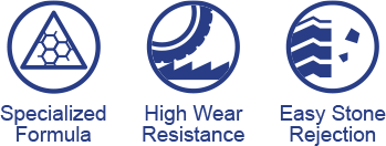 The optimized pattern groove improves the tyre heat dispersing and stone rejection performance.